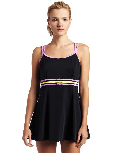 @@@ Product Details : It Figures! Women's Colorblock Triple Bow Swimdress, Black/Cyclamen, 16