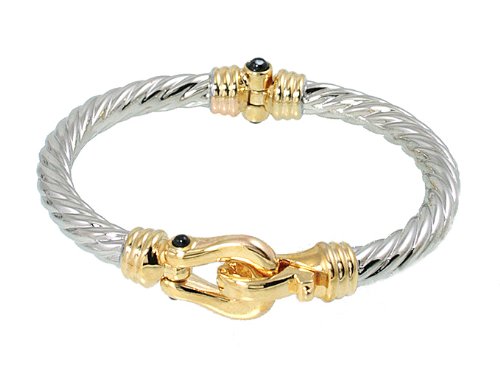 @@@ 2 Tone Designer Cable Hinged Bangle Bracelet with 4 Black Jewels & Clasp - - Review by Samuel