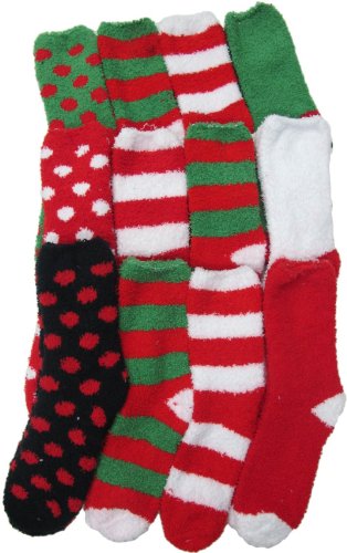 @@@ Fuzzy and Soft Christmas Socks, 12 Pack, Size 9-11. - - Review by Christen