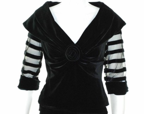 @@@ K M Collections V-Neck Velvet Blouse Black 8 - - Review by Bruce
