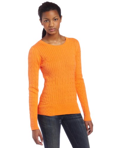 Buy Now! Sweet Romeo Women's V-neck Cable Sweater, Orange, Medium