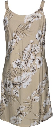@@@ Product Details : Bias Print Sundress - Fern Leaf Garden A-Line Hawaiian Aloha Zipper Back Sun Dress in Khaki - XS
