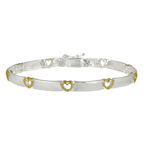 Buy Now! Sterling Silver Bar and 18k Yellow Gold Plated Heart Link Bracelet, 7"
